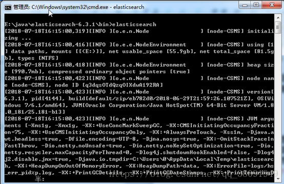 将zip文件解压到E盘,进入 E:elasticsearch-6.3.1bin 目录,运行下面的命令:elasticsearch