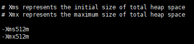 由于jvm的默认配置参数 为 1g,内存占用太多,这里在jvm.options中改为 512m