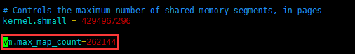修改 /etc/sysctl.conf文件,增加配置vm.max_map_count=262144