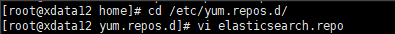 进入/etc/yum.repos.d/目录中创建elasticsearch.repo文件,文件插入以下脚本: