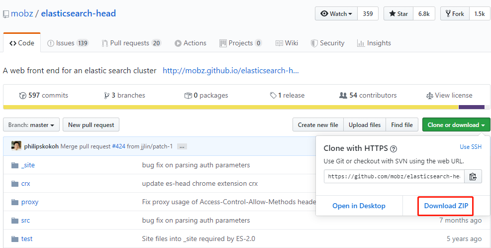 1.网址:https://github.com/mobz/elasticsearch-head下载安装包