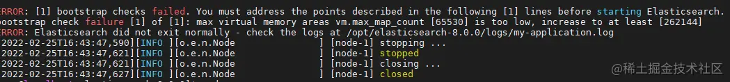 ERROR: Elasticsearch did not exit normally - check the logs at /opt/elasticsearch-8.0.0/logs/my-application.log