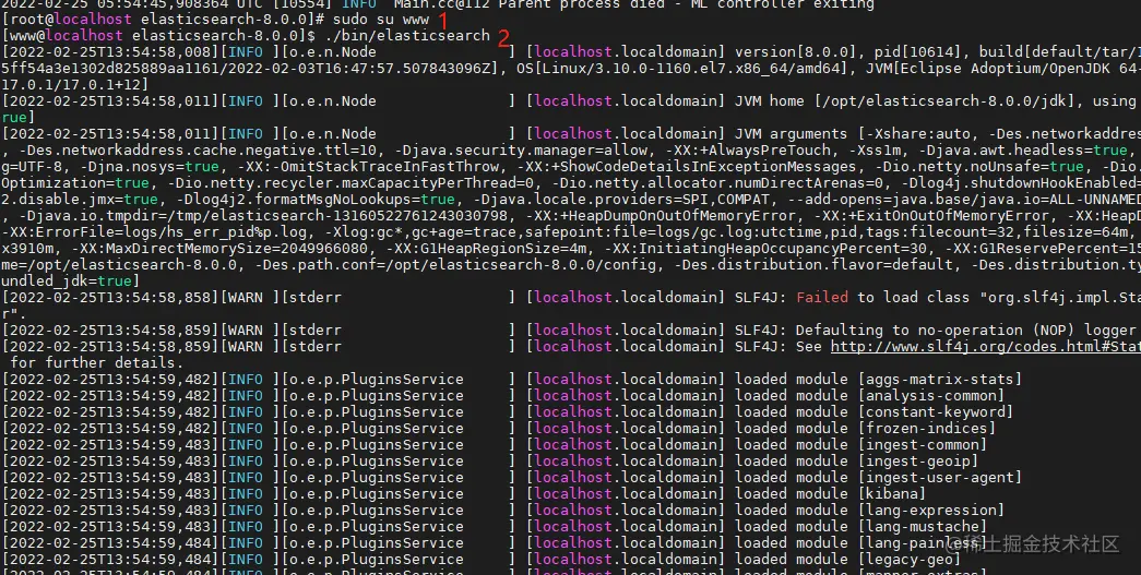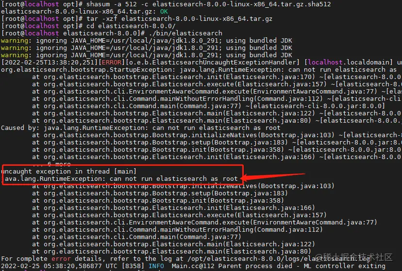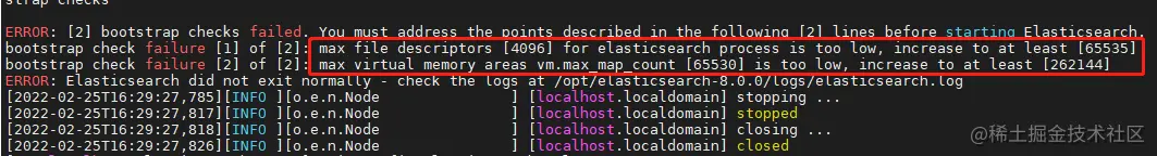 ERROR: Elasticsearch did not exit normally - check the logs at /opt/elasticsearch-8.0.0/logs/elasticsearch.log