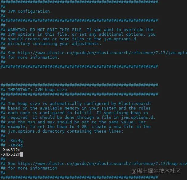 [root@localhost log]# vim /etc/elasticsearch/jvm.options