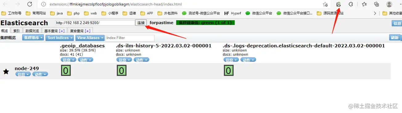 8.如果是谷歌或者Edge浏览器,可以安装elasticsearch扩展,这里就可以看到安装启动成功信息。