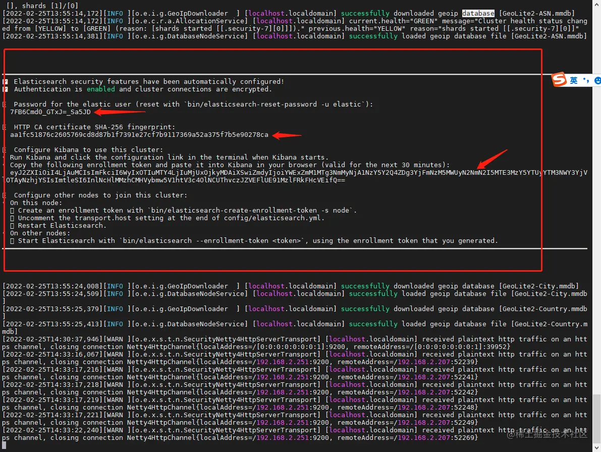 ℹ️ Password for the elastic user (reset with `bin/elasticsearch-reset-password -u elastic`):