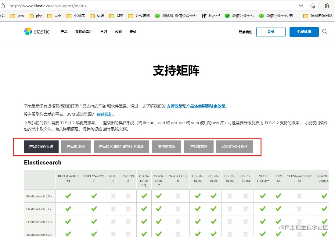 重要!重要!重要!请先根据自己操作系统选择支持的版本 :【链接:】 支持矩阵 | Elastic