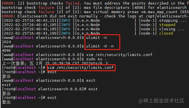 ERROR: [2] bootstrap checks failed. You must address the points described in the following [2] lines before starting Elasticsearch.