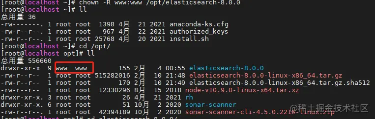 4.安装后默认添加了elasticsearch用户,所以将新增的目录权限给elasticsearch