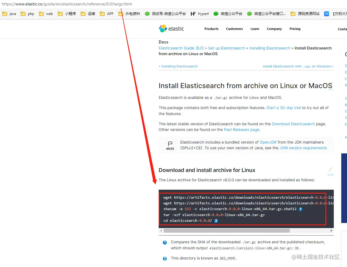 8.0的linux链接:Install Elasticsearch from archive on Linux or MacOS | Elasticsearch Guide [8.0] | Elastic