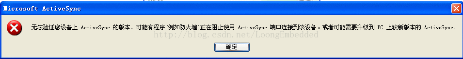 对话框的内容是“无法验证您设备上ActiveSync的版本,可能有程序(例如防火墙)正在阻止使用ActiveSync端口连接到设备,或者可能需要升级到PC上教新版本的ActiveSync”,这个问题很多使用WINCE系统的朋友都遇到过,目前只能找到出现问题时修复此问题的办法: