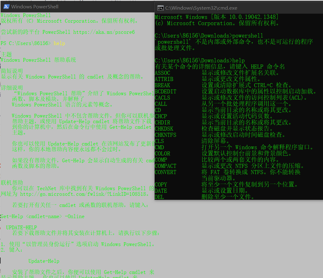 powershell可以理解为cmd升级版,可以做到很多cmd做不到的事情,比如powershell可以运行cmd,反之则需要调用,较为麻烦。