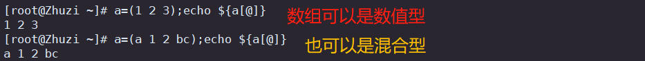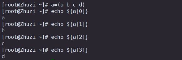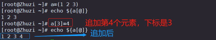 数组名=(元素0 元素1 元素2 ……) 定义数组
