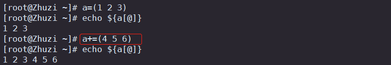 数组名+=(变量1 变量2 ...)