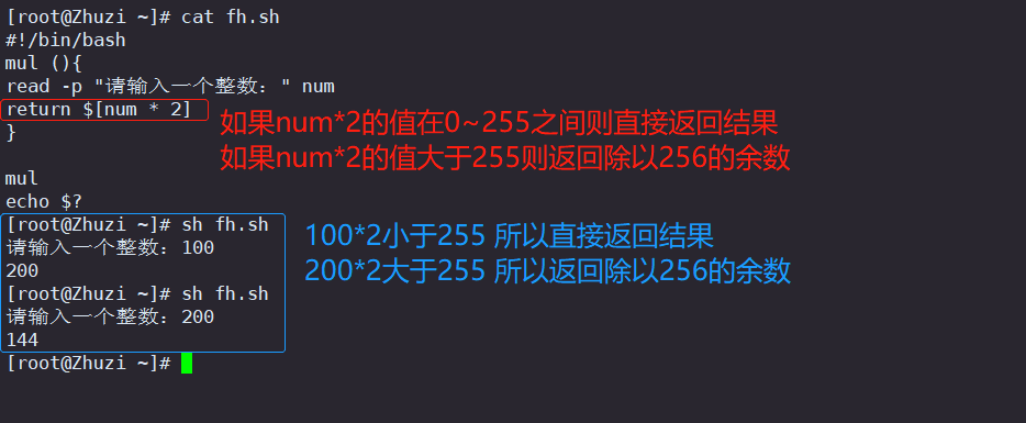 函数一结束就取返回值,因为$?变量只返回执行的最后一条命令的退出状态码