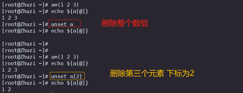 unset 数组名[数组下标]