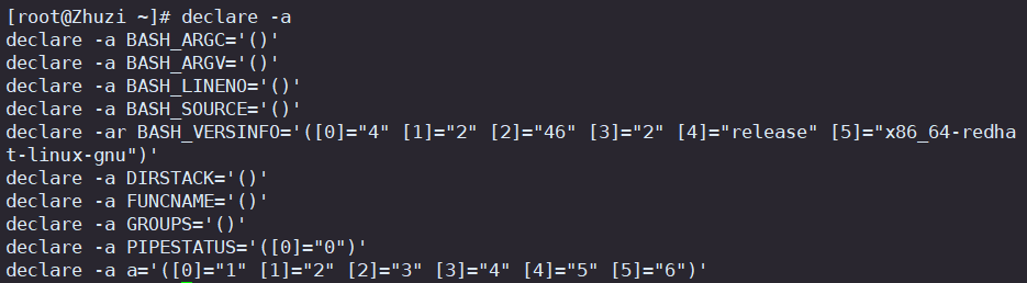 7.6 declare -a: 查看所有数组