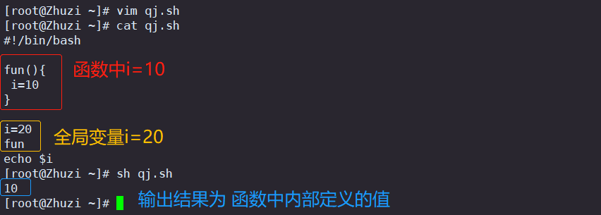 示例脚本1:Shell脚本中变量默认全局有效
