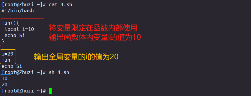 - 将变最限定在函数内部使用local命令
