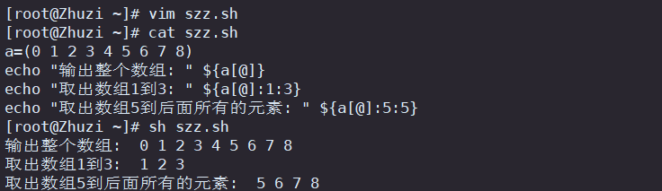echo "取出数组5到后面所有的元素: " ${a[@]:5:5}