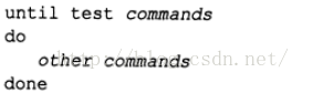 until命令刚好与while命令相反。until命令需要制定一条测试命令,这条命令通常产生一个非0的退出状态。只要测试命令的退出状态非0,bash shell就会执行列在循环当中的命令。一旦测试条件返回0退出状态,循环停止。until命令格式如下: