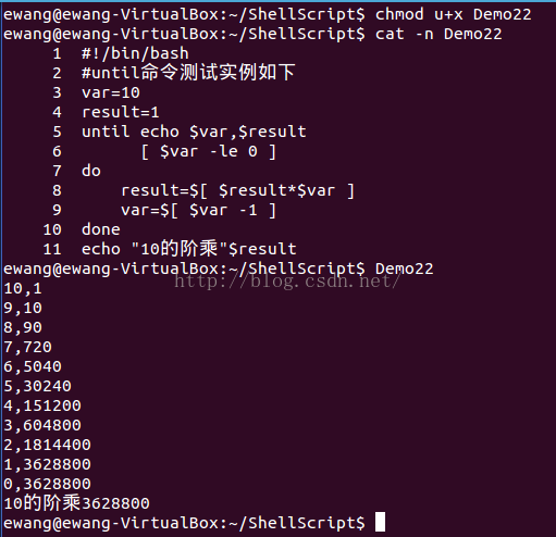 echo "10的阶乘"$result