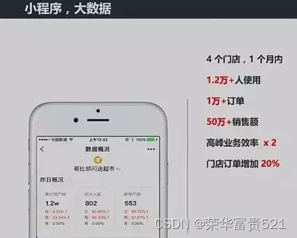 若比邻便利店小程序则是基于在高峰时期购物排队时间长的痛点,将店内所有的商品通过二维码和小程序相连,顾客只需在把商品放到购物车之前的那一刻通过微信小程序扫扫二维码即可实现付款,无需排队结账。闪亮数据如下: