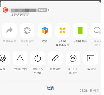 小程序右上角的三个点--》打开弹框--》下面的滑动到最右边找到开发调试