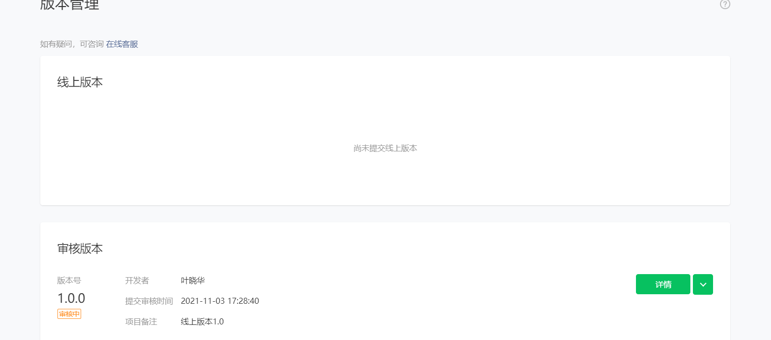 审核成功后,线上版本就户出现。