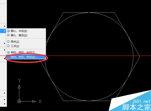 2、用绘图——>圆——>相切,相切,相切,画出内切圆。