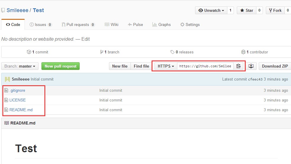 比如复制以后是这样的:https://github.com/Smileeee/Test.git