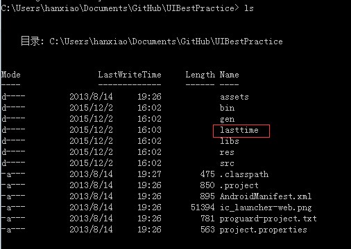 这个时候通过ls命令就会查看到项目中多了一个文件夹lasttime: