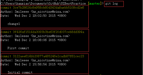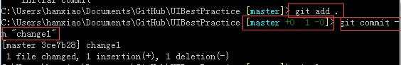 首先是提交我们的修改,通过add和commit,其中“change1”是对我们这次提交的一个名称: