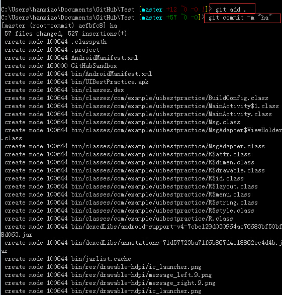 3、向仓库中添加代码并提交: