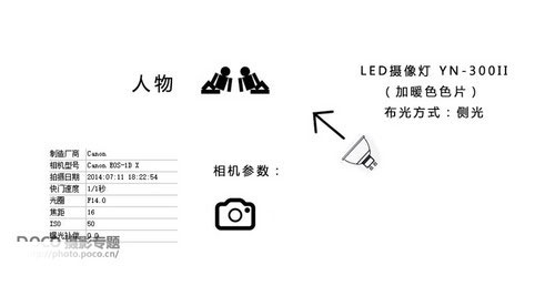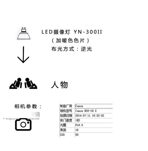 前期思路:前期布光采用暖色LED逆光照亮人物,配合三脚架,使用小光圈慢门拍摄,快门:1S, 光圈:F18, ISO:50。