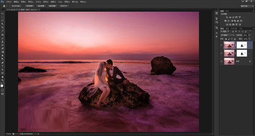 画面整体调整,并调整海水的色温,是海水呈现冷色调,是画面中呈现有冷暖色调的对比。最后锐化保存。