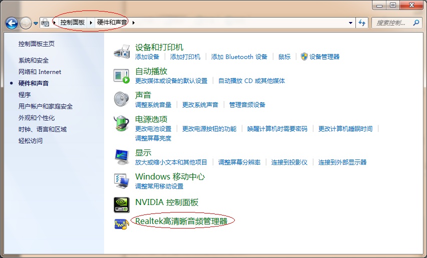 a. 可以通过使用鼠标左键 单击开始-控制面板-硬件和声音-Realtek 高清音频管理器 打开声卡控制台