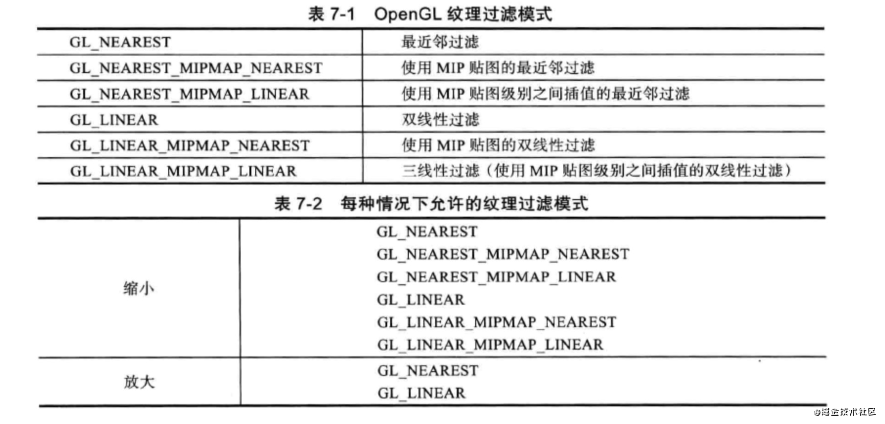 * GL_TEXTURE_MAG_FILTER:在放大的情况下用 GL_TEXTURE_MAG_FILTER:双线性过滤