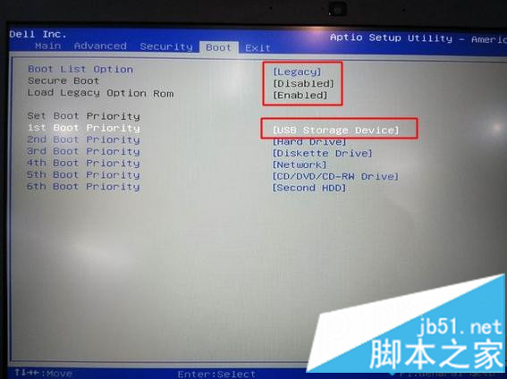 3、接着将1st Boot Priority设置为USB Storage Device,按F10保存即可从U盘启动,也可以在启动时按F12调出快捷菜单,选择USB启动;