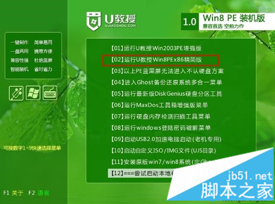 4、进入U盘启动盘,运行【02】U教授PE系统;