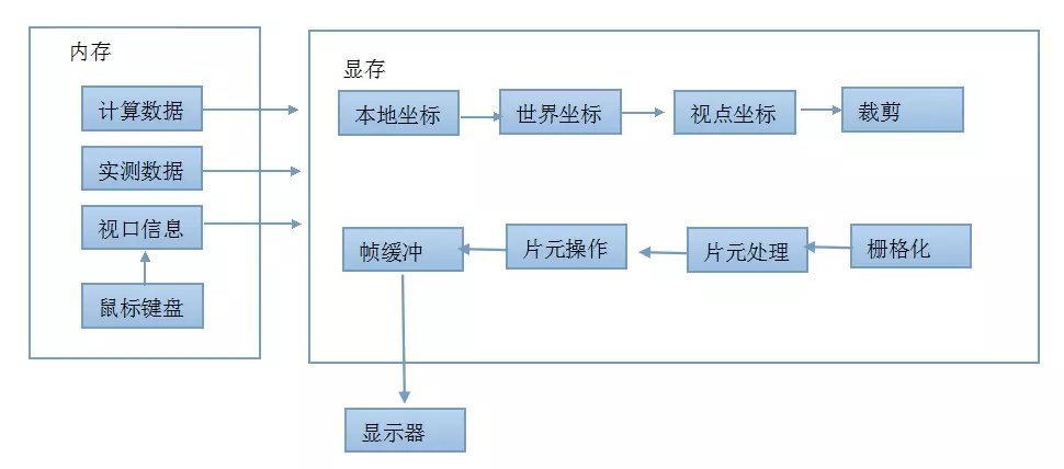 以上是三维成像的基本流程,这个过程一般称做三维固定管线的渲染过程。