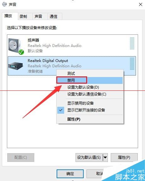 5、这样设置后大部分都已经解决了win10小娜没声音的问题。如果还有部分还是没有声音,那么我们需要把除“扬声器”以外的其它设备给禁用掉
