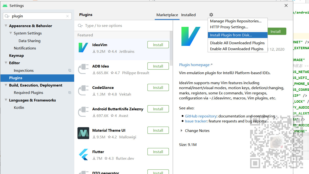 然后打开Android Studio-File -Settings-Plugins-Install Plugin from Disk