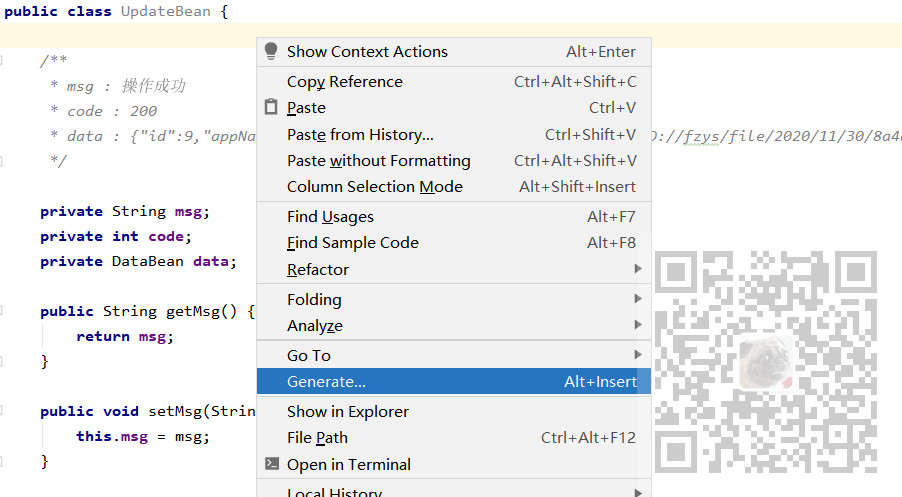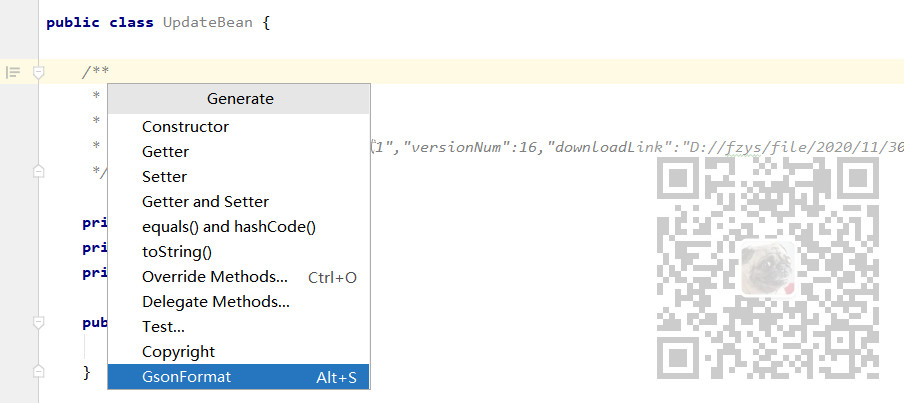 以上就是迷路香菇最近收集整理的关于AndroidStudio中安装GsonFormat插件并根据json文件生成JavaBean场景实现的全部内容,更多相关AndroidStudio中安装GsonFormat插件并根据json文件生成JavaBean场景实现内容请搜索靠谱客的其他文章。