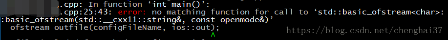 ofstream outfile(fileName.c_str(), ios::out); //在传的第一个参数中,在Linux下是需要用string中的.c_str()转换成char<> ,而在win下却不用转换也可以!!!