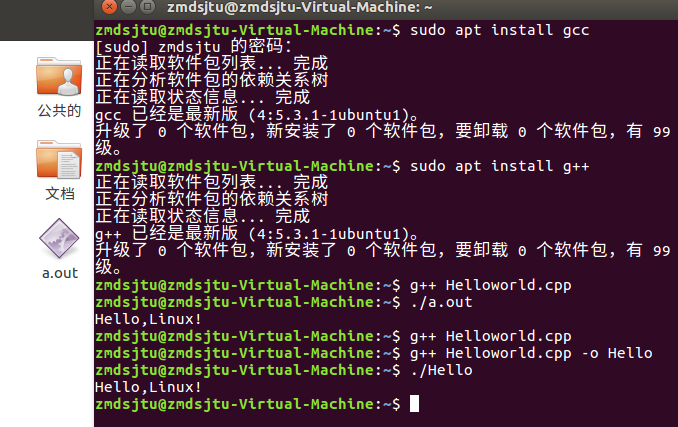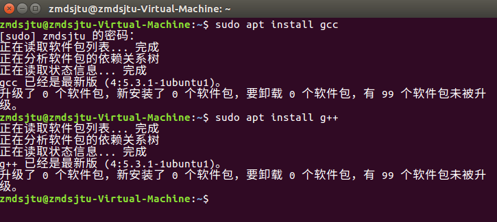 安装完各种环境工具之后(sudo apt install g++)
