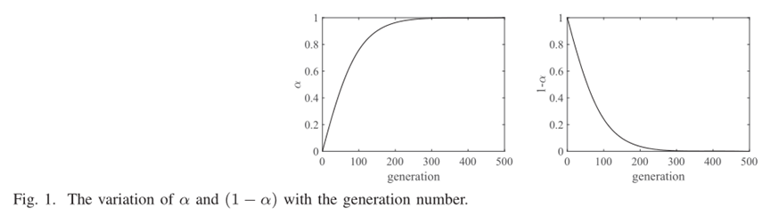 - α 和(1-α)是用于控制Rc和Rd的权重,这个参数是随着迭代次数进行变化的。其迭代趋势如图1所示