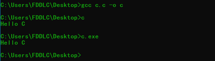 说明1:我的 .c 和 .cpp 文件放在桌面,因此在命令行中我要把当前路径切换为:![]()
