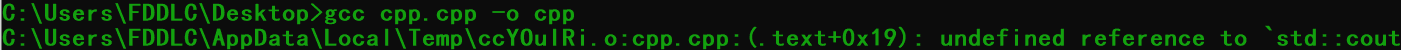 使用 gcc cpp.cpp -o cpp 会报错(和下面是一样的):