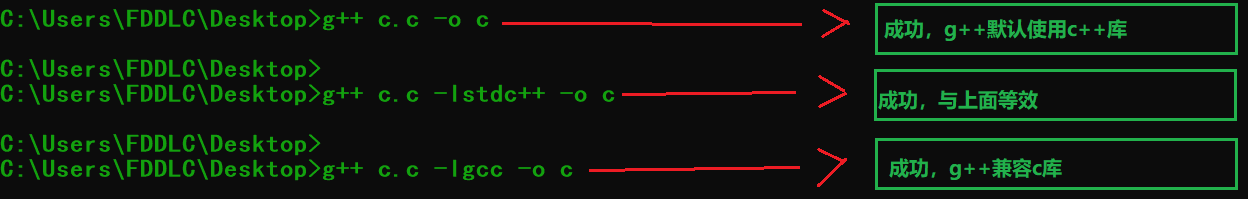 (链接的是c++库,但c.c也能编译成功)